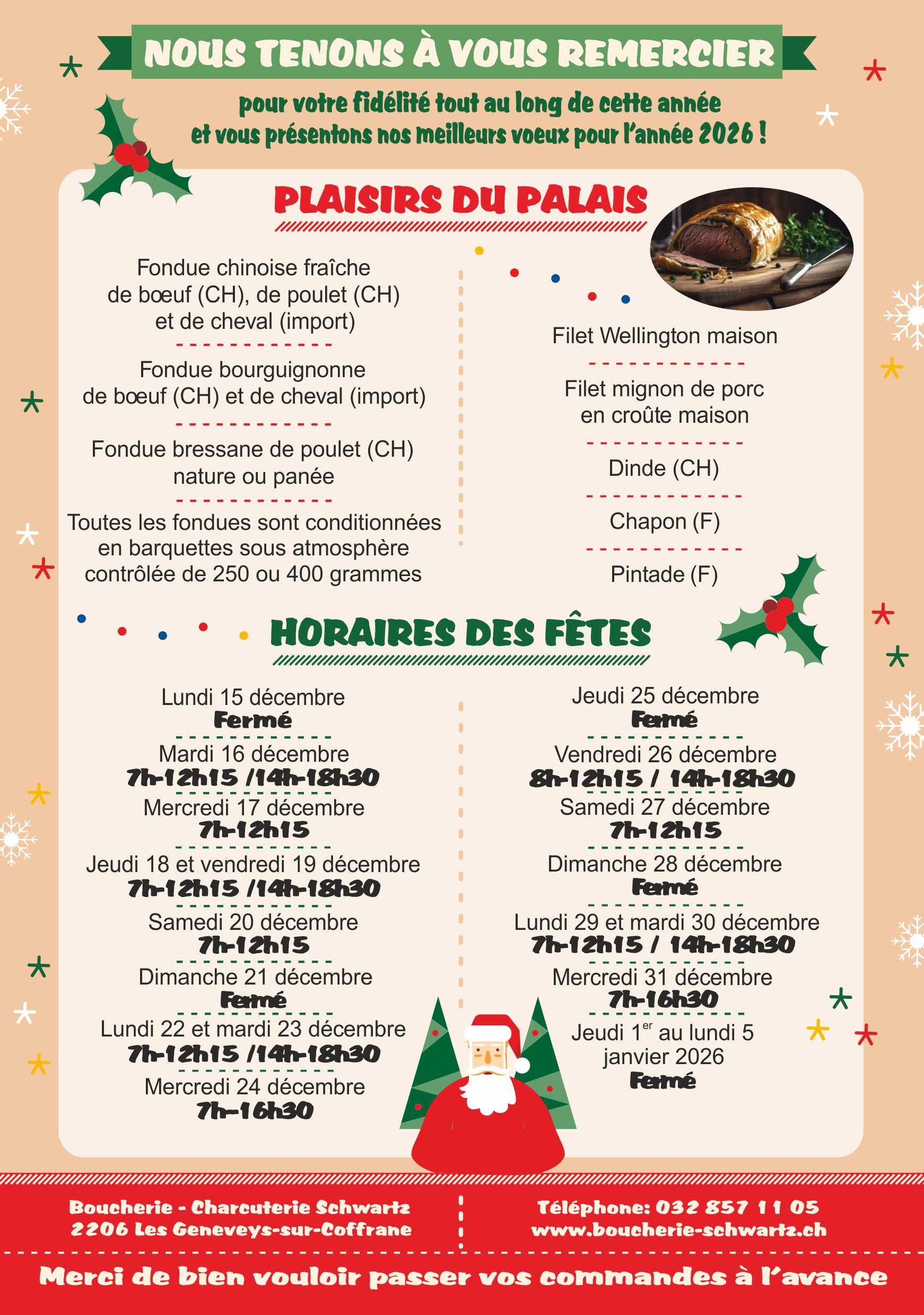 Les produits de fête seront disponibles dès le vendredi 12 décembre 2025 Ouvrir le fichier pdf du flyer